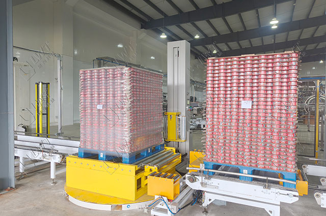 风干机(快速吹干罐身表面残留汤汁,防止罐体生锈)→ X射线检测(排查汤食罐内金属/玻璃等异物)→重量检测(复检汤固总重量,剔除超差品)→贴标→自动装箱→机器人码垛(轻拿轻放,避免罐体破损导致汤汁渗漏)