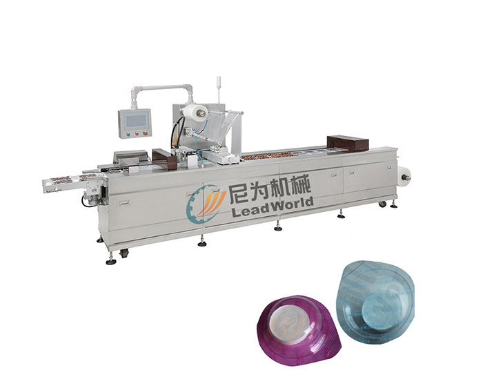 自动面膜真空包装机,主要是根据下膜加热拉伸成型,然后将包装物填入成型好的下膜腔中,可充入氮气,然后上膜与下膜热合,形成包装袋,在根据横切、纵切将包装物进行分割。包装的成品输出等一次自动完成,操作简单,减少劳动力,解决招工难等问题。