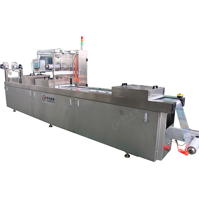 食品真空包装机包装的過程由设备自动完成,根据需要,装填可选用人工或机械实现,下卷膜经牵引以定步距进行步进,经预热及加热区,由真空吸塑成形,经风速冷却后脱膜进入装填区,装填物料后进入...